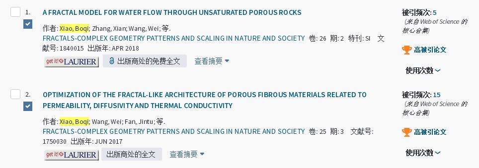 据2018年9月ESI公布的最新数据显示,我校bwin必赢国际官网APP肖波齐教授带领的新能源与传热传质学术团队在中科院二区SCI期刊Fractals上发表的 “AFRACTAL MODEL FOR WATER FLOW THROUGH UNSATURATED POROUS ROCKS”以及“OPTIMIZATION OF THE FRACTAL-LIKE ARCHITECTURE OF POROUS FIBROUSMATERIALS RELATED TO PERMEABILITY, DIFFUSIVITY AND THERMAL CONDUCTIVITY”两篇论文入选ESI高被引学术论文。肖波齐教授为第一作者,青年教师龙恭博为通讯作者,课题组研究生王威、张岘等参与研究。