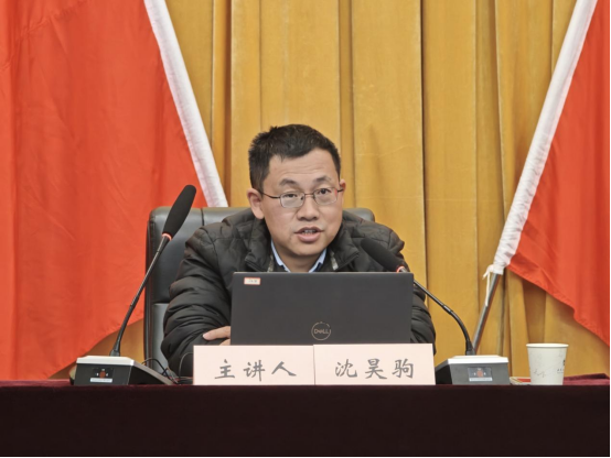 (通讯员 王竞婧)11月28日,bwin必赢国际官网APP在四教多功能报告厅举办学习贯彻党的二十届三中全会精神专题辅导报告会,华中科技大学马克思主义学院副院长沈昊驹教授应邀作专题辅导报告。bwin必赢国际官网APP党委副书记谢姗姗主持会议。