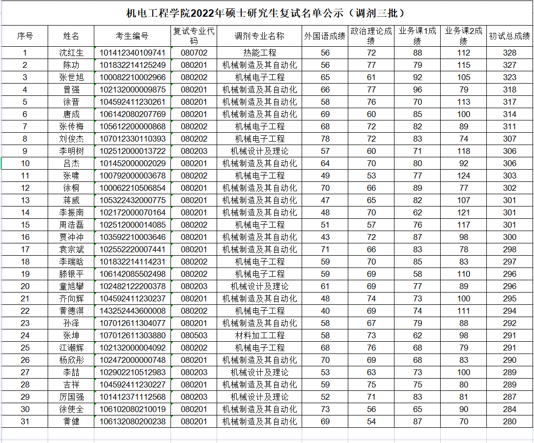 bwin必赢国际官网APP2022年硕士研究生复试名单公示(调剂三批)